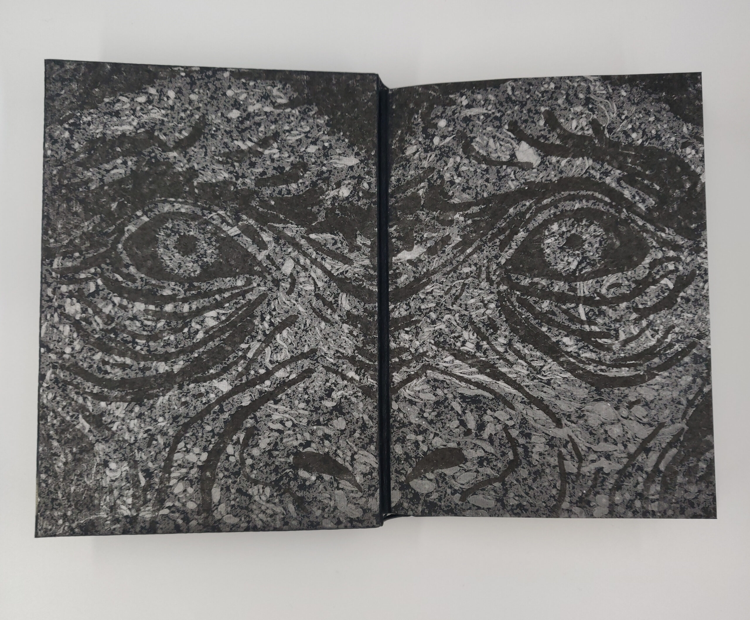 Gardes bord à bord en papier décoré au monotype et charnières cuir.